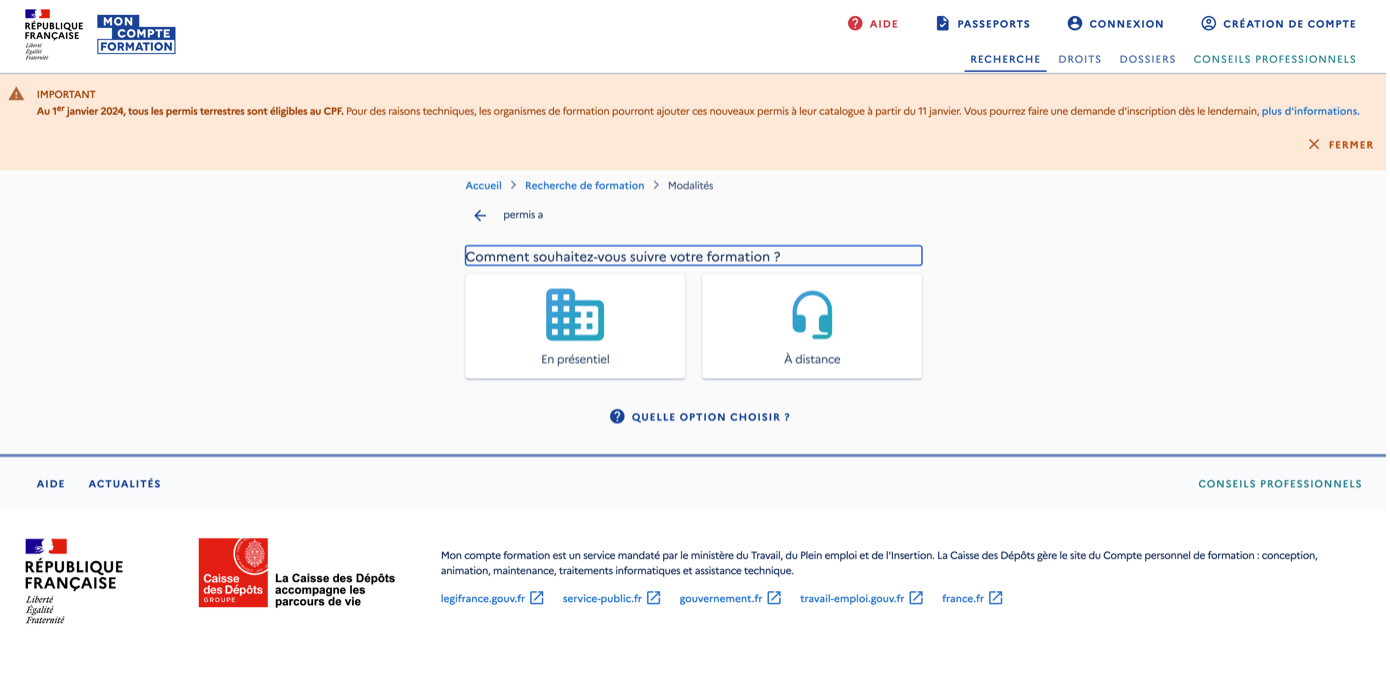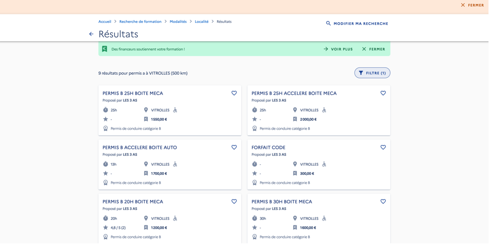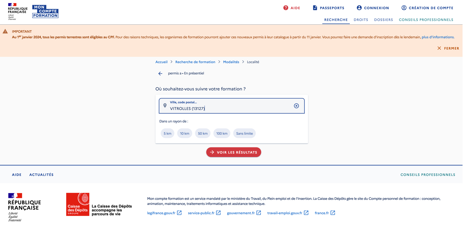 et à suivre le pas à pas ... Connexion ![]() Recherche de Formation ![]() En présentiel ![]() Inscrire VITROLLES dans l'onglet de la ville ![]() Organisme de formation